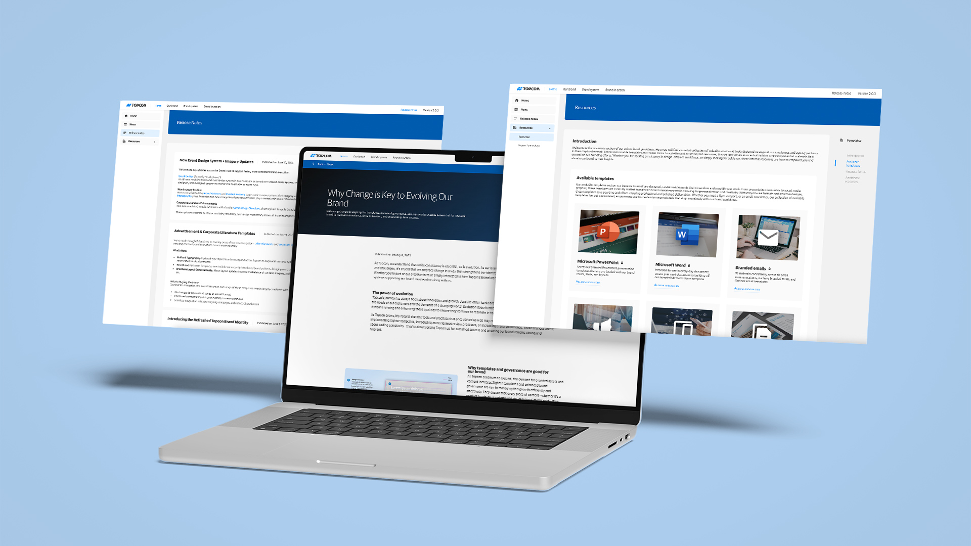 The outcome of this project was a more streamlined, accessible, and user-focused brand platform. We separated all internal-facing guidelines and production materials, moving them to an internal SharePoint site to keep the public-facing Brand HUB lean and easy to navigate. In addition, a series of detailed production guides were developed specifically for designers working with the Topcon brand. These in-depth documents, housed on a parallel SharePoint site, provide step-by-step direction on using branded templates and creating assets that align with our standards. I also introduced a new “Release Notes” and versioning system, allowing users to easily track updates and see what has changed over time. Beyond serving as a design reference, the new site now functions as a true central HUB for all brand-related news, content, and resources. The response has been overwhelmingly positive, with both internal teams and external agencies praising how much simpler and more efficient it is to find and apply brand materials.
