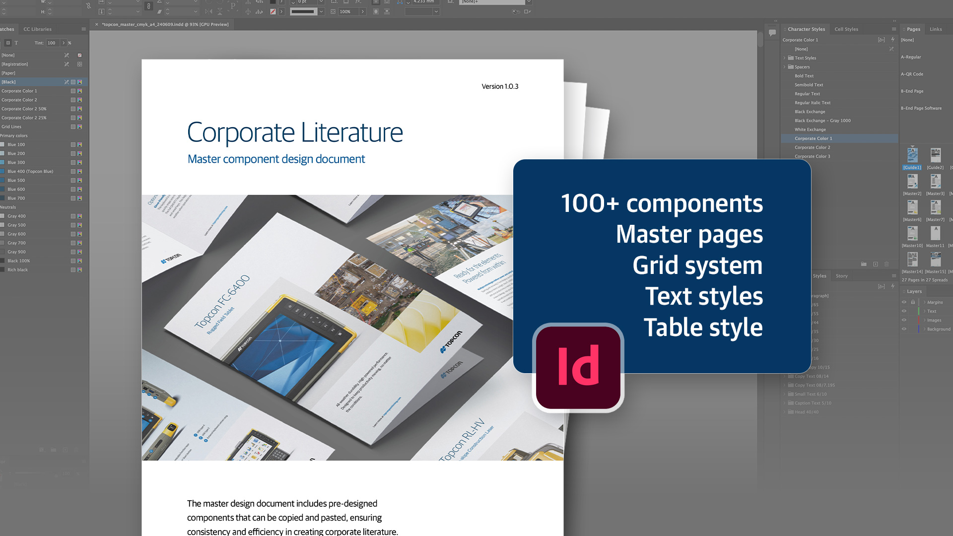 I led the creation of Topcon’s collateral design system, a comprehensive suite of InDesign templates and visual standards built to unify and streamline all marketing and corporate materials. This system established a cohesive framework across brochures, datasheets, case studies, flyers, and other print and digital collateral, ensuring every touchpoint reflected the same level of precision and professionalism as our products. Designed in alignment with Topcon’s overarching brand principles of clarity, innovation, and human-centric precision, the system introduced consistent typography, grid structures, and modular layouts that balanced technical information with accessible, visually engaging design. The result is a scalable platform that allows teams worldwide to produce materials efficiently while maintaining a unified and recognizable brand voice.
